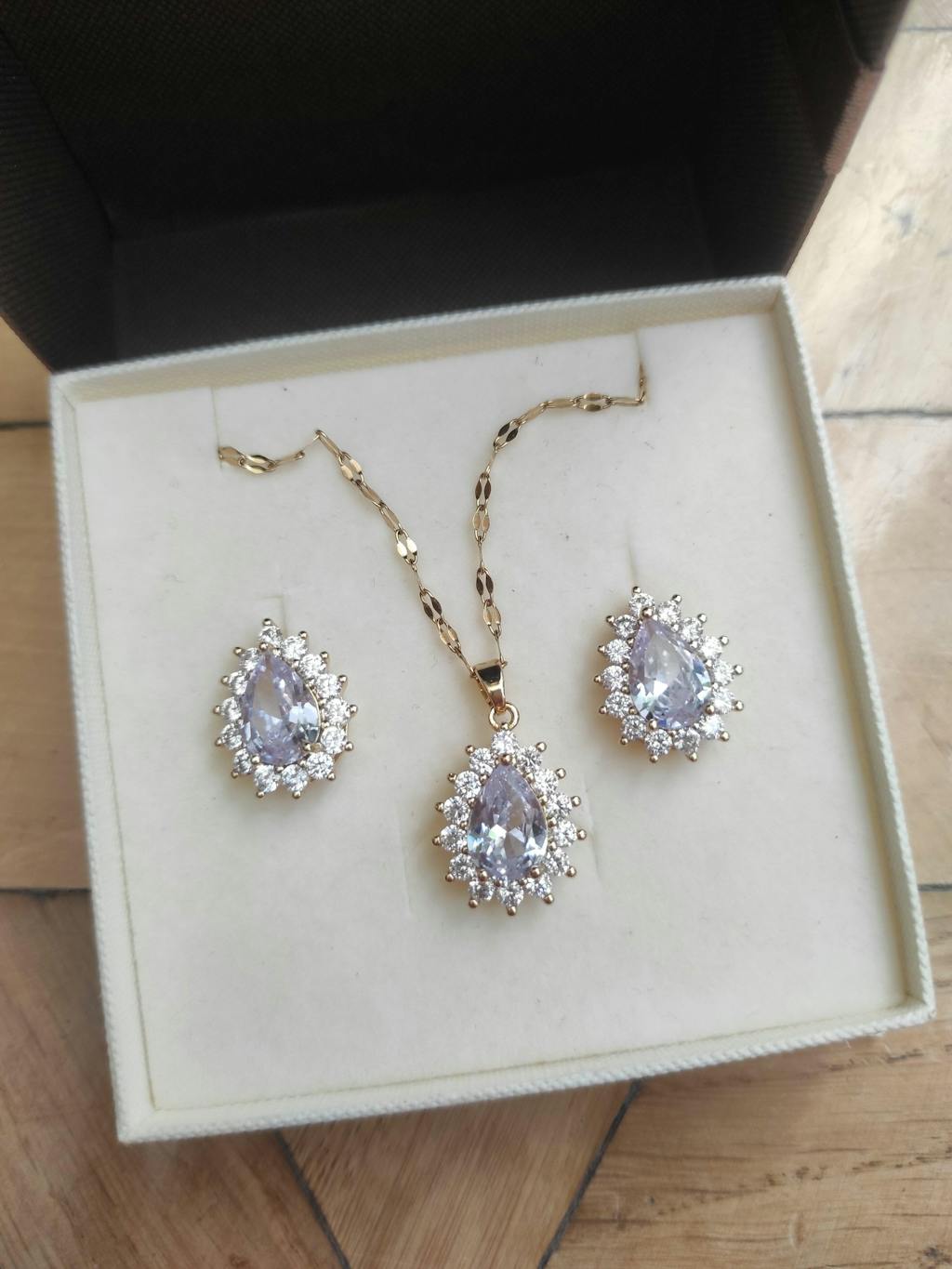 Zestaw składający się z kolczyków i wisiorka jest przepiękny. Cudownie połyskuje i prezentuje się bardzo elegancko! W prezencie dodatkowo otrzymałam kolczyki z perełką - są bajeczne, dziękuję!